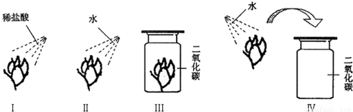 某同学设计了如下一组实验.取四朵用石蕊试液染成的紫色的干燥纸花,分别按如图进行实验.回答下列问题: