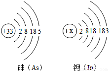 已知砷和铟的原子结构示意图如下: