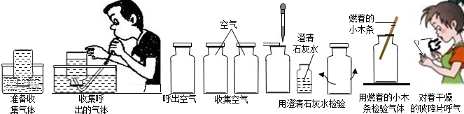| ①、利用排水法收集一瓶呼出的气体 | ----------------------------- |