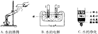 水是重要的自然资源,如图所示的3个实验,A中水发生了