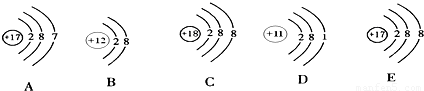 下面是五种粒子的结构示意图