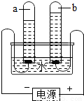 没有水,就没有生机勃勃的地球.小华与同学们为了探究水的组成,他们用如下图所示电解水的装置进行实验.通电后两电极都有气体放出,一段时间后,a试管中气体体积是b试管气体体积的两倍.经检验a试管里的气体能燃烧,b试管里的气体能使带火星的木条复燃.你认为上述实验现象可以说明的事实有: