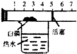 用如图所示的实验装置可以测定空气中氧气含量.在一个具有刻度和可以左右滑动的活塞的玻璃管中放入足量的自磷,活塞左端管内密封有空气,右端的管口跟空气连通.将玻璃容器固定在盛有80℃热水(恒温)的烧杯上,进行实验.试回答: