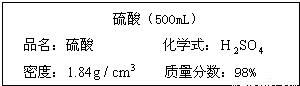 现有一瓶未开启的浓硫酸,试剂瓶标签上的部分内容如图所示.