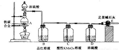 [实验探究]称取mg铁碳合金,加入过量浓硫酸,加热待A中不再逸出气体时,停止加热,拆下E装置并称重,E增重bg.下列对实验结果分析正确的是( )