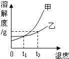 (2)甲、乙两种物质的溶解度受温度影响较小的是