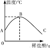 将稀盐酸慢慢滴入装有氢氧化钠溶液的烧杯中,用温度计测出烧杯中溶液的温度,溶液温度随加入稀盐酸的质量而变化如图所示:
