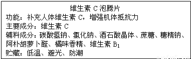 小芳同学从超市购买了一瓶维生素C泡腾片.如图是标签上的部分内容:
