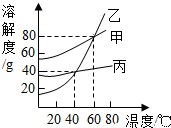 D.40℃时,三种物质的溶解度由大到小依次为:乙>甲>丙