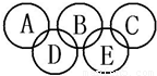 图中A、B、C、D、E五环分别代表初中化学中常见的五种物质,两环相连表示两种物质之间能发生化学反应.其中A、E常温下都是黑色固体,且E为一种非金属单质;B、C、D常温下均为无色气体,其中B为光合作用的产物之一,C的固体可用于人工降雨;A、D反应可生成一种红色固体和C.