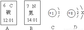 如图A、B是碳元素和氮元素在元素周期表中的部分信息,C、D是两种粒子的结构示意图.仔细观察,按要求回答下列问题: