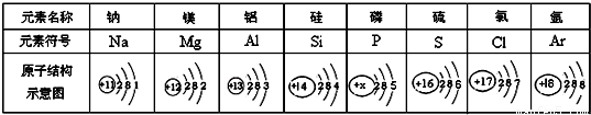 下表为元素周期表中某一周期元素的原子结构示意图:请回答下列问题: