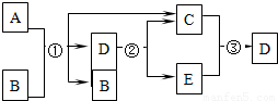 A、B、C、D、E均为初中化学中的常见物质,其中A、D的组成元素相同,它们在一定条件下有如图所示的转化关系.