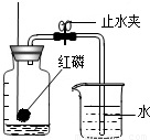 ②在带橡皮塞和导管的燃烧匙内装入足量的红磷,将导管上的止水夹夹紧,在酒精灯上点燃红磷,并立即伸入集气瓶内,塞紧橡皮塞.