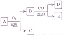 (2)A~E五种物质之间具有如图所示转化关系.已知:A是由两种元素组成的纯净物,其中金属与非金属元素的原子个数比为1:2;B、C都是氧化物,B中铁的质量分数为70%,C是一种刺激性气味的无色气体,它是形成酸雨的物质之一;固态D常叫干冰;E是最常见金属,可溶于稀盐酸并产生气体,该气体是有利于环境保护的理想燃料.请回答: