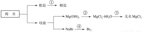 已知所含元素化合价发生变化的反应是氧化还原反应,其中被还原的元素化合价降低,被氧化的元素化合价升高.海洋中有丰富的资源,如下图所示利用海水可获得许多化工产品.