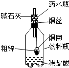 | ①称量10.0g粗锌放在铜网中,按图示装置组装后,称得仪器和药品总质量为120.0g | ||