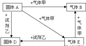 A、D是两种常见的固体,其中D为亮红色;B、E是两种常见的气体,其中气体E有剧毒.它们之间有如下关系: