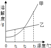 3℃时的甲、乙两物质的饱和溶液降温到t