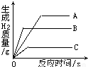 将质量相等的A、B、C三种金属(均为+2价),同时分别放入三份溶质质量分数相同且足量的稀盐酸中,反应生成H