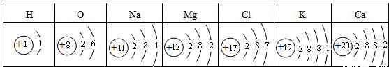 下表列出了部分人体中含量较多元素的原子结构示意图.请据表回答下列问题