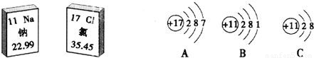 以下是钠元素、氯元素在元素周期表中的信息图和3种粒子的结构示意图.