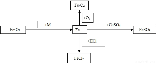 铁是一种化学性质比较活泼的金属,右方框图是铁的化学性质和制取小结归纳,方框图中实例M的化学式不可能是( )