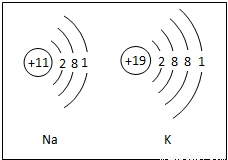 元素周期表中,钾元素和钠元素同在一个纵行里,它们的原子结构示意图如右所示,则钾与钠的化学性质