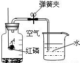 某同学利用右图装置测定空气中氧气的含量,红磷燃烧后恢复到室温,打开弹簧夹发现进入广口瓶中的水的高度不足广口瓶容积的