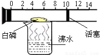 如图是一个具有刻度和活塞可滑动的玻璃容器,其中有空气和足量的白磷,将它放在盛有沸水的烧杯上方,进行实验.请完成实验报告: