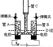 某同学制作了如图所示的简易电解水装置,进行家庭小实验(注:该装置气密性良好,且反应一段时间后停止通电,A、B管内液面均高于图中D线).请根据要求回答问题: