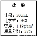 实验室保存的一瓶浓盐酸,瓶上的标签部分内容如图所示,请你根据标签上的提供的数据回答下列问题: