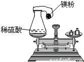 某学生在课外研究性学习活动课上用如图所示的装置做实验,瓶内放了足量的硫酸,可充气的气球放有一定量的镁粉,将它紧紧套在瓶口上,放在托盘天平上称量,质量为W1,然后将气球内的镁粉全部倒入瓶内,立即产生气体,气体逐渐胀大,充分反应后最终再次称量,质量为W2,结果W1>W2,试分析: