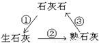 石灰石、生石灰、熟石灰在一定条件下可以转化,请你用化学方程式表示右图中转化的化学反应,并在括号中说出其反应类型: