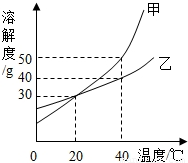②40℃时,在100g水中加入50g甲,所得溶液的质量是