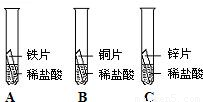 (2)在探究铁、铜、锌三种金属的活动性顺序时,同学们做了右图所示的三个实验:(所用金属形状、大小和稀盐酸的用量均相同)