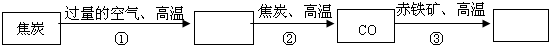 (2)炼铁厂常以焦炭、赤铁矿、空气为主要原料炼铁,反应过程如下: