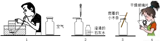 某校研究性学习小组的同学为了探究呼出的气体与吸入的空气中氧气、二氧化碳和水蒸气的含量是否相同,设计了简单的实验方案,其主要操作步骤如图所示.请根据图示回答: