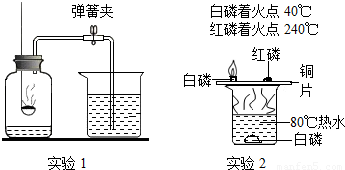 (3)实验2中,观察到铜片上的白磷燃烧而红磷不燃烧,可得出物质燃烧的一个条件为