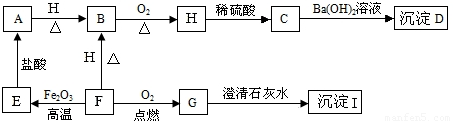 A、B、C、D、E、F、G、H、I都是初中化学学过的物质.其中B为红色固体,D为混合物,E、H均为黑色固体,F是一种无色气体.它们之间有下图的转化关系(部分生成物已省去).