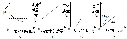 D.等质量的Mg和Zn分别加入足量的稀硫酸中