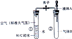 如图所示,夹子开始处于关闭状态,将液体A滴入试管②与气体B充分反应,打开夹子,可发现试管①内的水立刻沸腾了.则液体A和气体B的组合可能是下列的( )