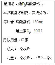2磷酸氢钙片(其有效成分是CaHPO