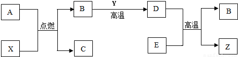 A、B、C、D、E、X、Y、Z都是初中化学中常见的物质,其中A是天然气的主要成分,X、Y、Z是单质,B、C、D、E是氧化物,常温下,C是液体,Y是黑色固体,E是红色粉末.它们之间有如下反应关系: