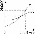 甲、乙两种不含结晶水的固体物质的溶解度曲线如图所示.根据图示判断,下列说法中,不正确的是( )