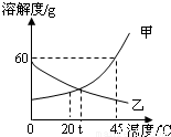 D.t℃乙物质的饱和溶液降到20℃时,溶液中溶质质量分数增大
