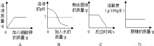 A.在一定温度下,向不饱和的硝酸钾溶液中加入硝酸钾固体