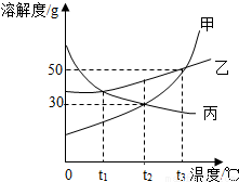 (1)丙物质的溶解度随温度的升高而