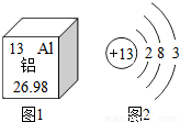 图1是元素周期表中铝元素的部分信息,图2是铝原子的结构示意图.下列说法不正确的是( )