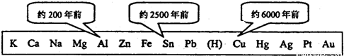 下图表示了金属活动性顺序表中铜、锡和铝被人类大规模冶炼、利用的大致年限.
